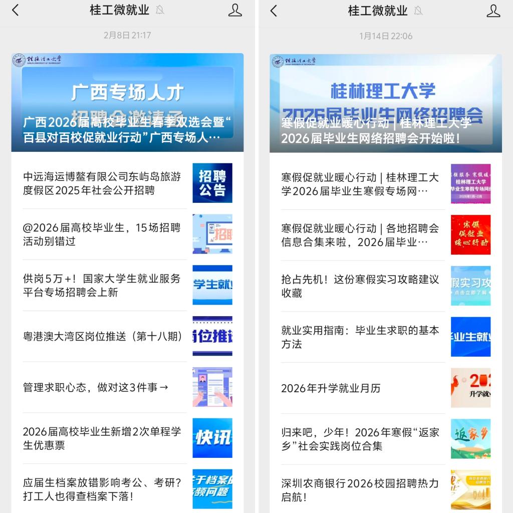 寒假期间通过微信公众号发布就业信息