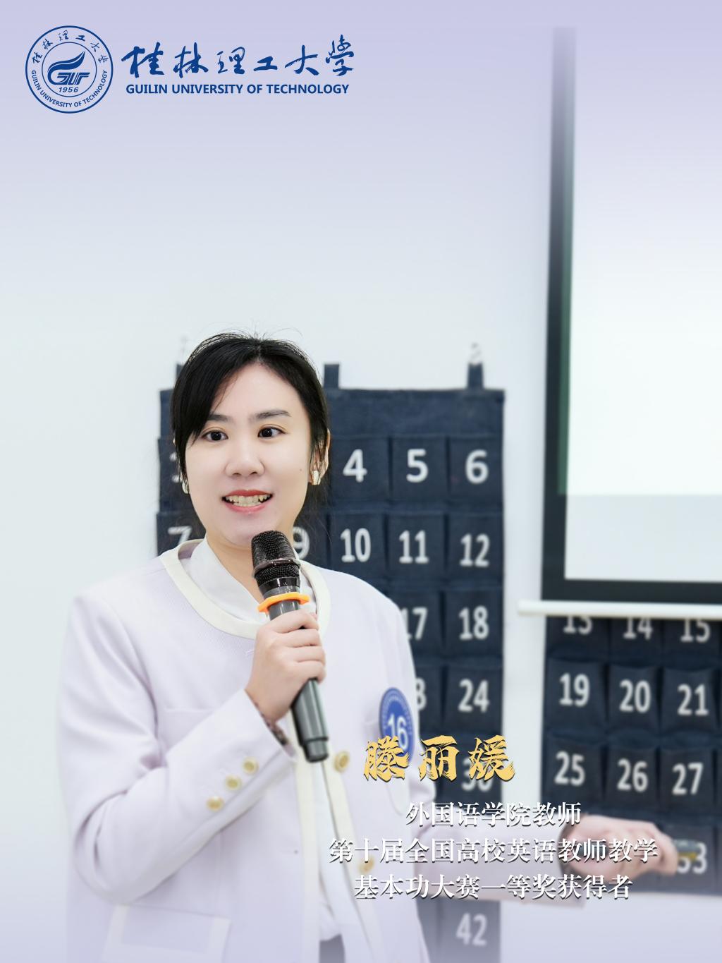 滕丽媛,外国语学院教师,副教授,荣获第十届全国高等院校英语教师教学基本功大赛自治区级特等奖、国家级一等奖,全国高等学校外语课程思政教学比赛自治区级一等奖、国家级二等奖,全国外语微课大赛自治区一等奖、国家级三等奖,外研社“教学之星”大赛全国复赛一等奖等。主持省级科研项目1项,校级教改项目1项;参与省级科和教改研项目6项;发表学术论文多篇,出版教材和专著3部。指导学生参加各类外语竞赛获全国性奖项10余项、省部级奖项20余项;指导学生参加第十四届IET全球英语演讲竞赛(PATW)获中国总决赛二等奖一项,创新奖一项;多次指导学生进行大创自治区级、校级立项,并以优秀成绩顺利结题。