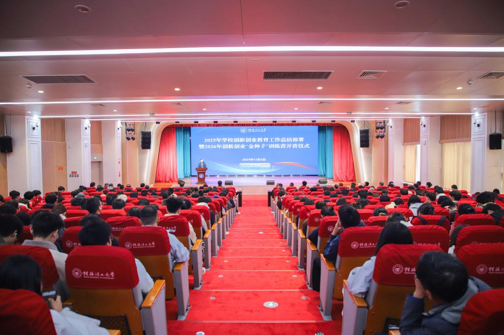 12月5日上午,学校在屏风校区文化活动中心举行2025年创新创业教育工作总结部署会暨2026年创新创业“金种子”训练营开营仪式。学校党委副书记、校长王敦球出席并讲话,党委常委、副校长钱凯主持会议。党(校)办、学工部、研工部、本科生院、研究生院、科研院、校团委(创新创业学院)相关负责人,各二级学院院长、分管创新创业教育工作副院长、分管学生工作副书记、团委书记,以及2026年“金种子”项目团队的师生代表参加活动。