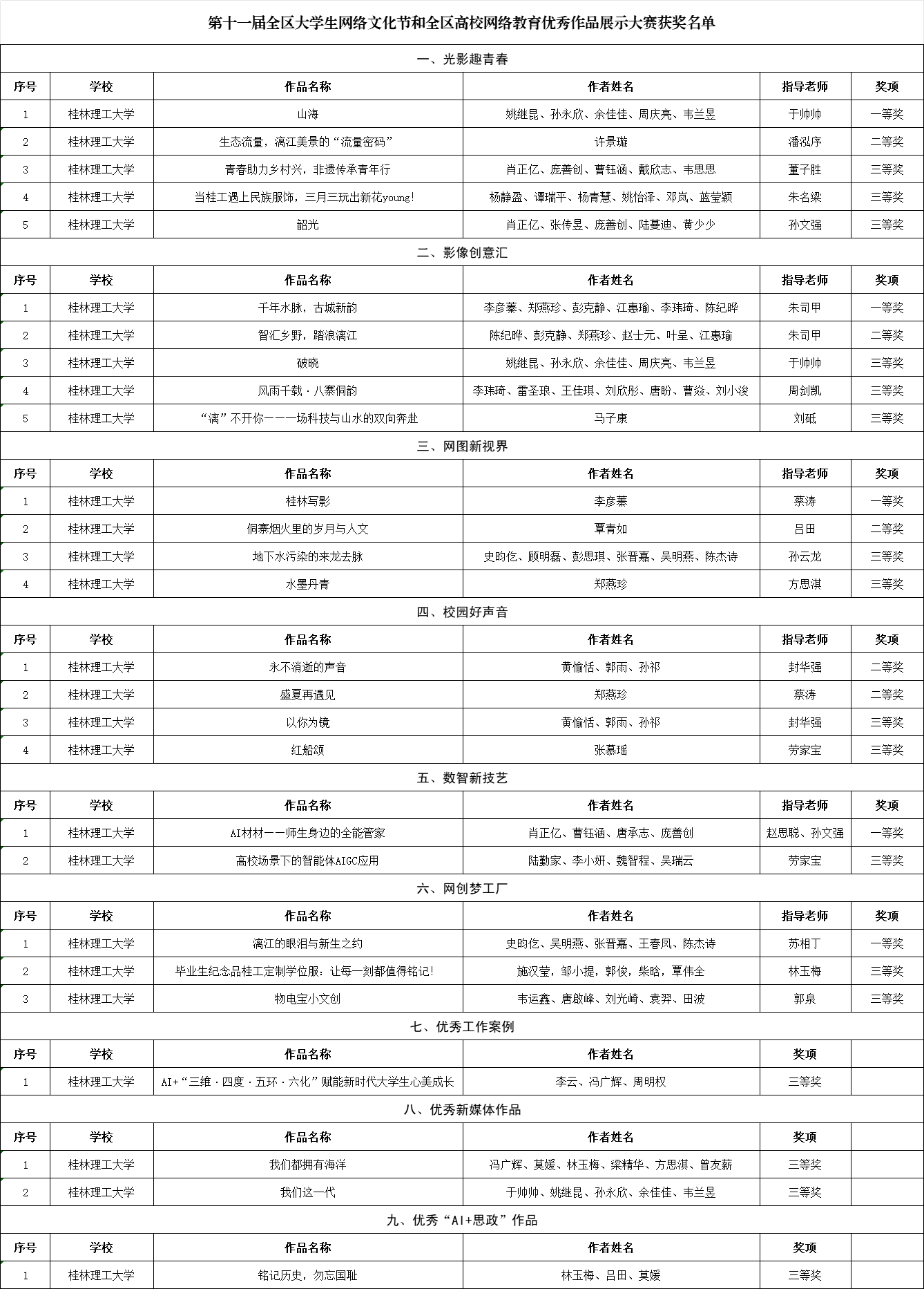 第十一届全区大学生网络文化节和全区高校网络教育优秀作品展示大赛获奖作品