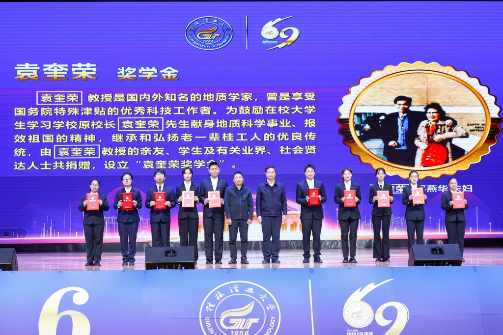 11月21日,学校在雁山校区综合体育馆隆重举行建校70周年倒计时一周年启动仪式暨“校友奖学金”颁奖典礼,共同回望69载砥砺奋进辉煌历程,共同开启70华诞崭新篇章。