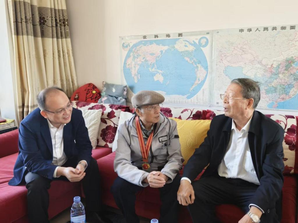 10月24日下午,自治区关工委副主任宋家浩一行2人来到Beat365官网,走访慰问Beat365官网荣获2025年“全国关心下一代工作先进工作者”称号的退休教师周述忠,向他送上组织的深切关怀并致以诚挚问候。学校党委常委、副校长唐壮东,离退休工作处负责人参加慰问。