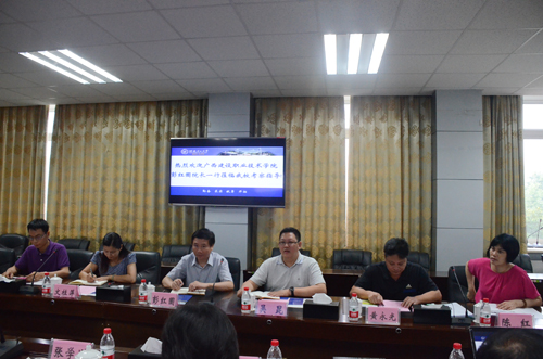 张学洪书记(右二)向彭红圃院长(右三)一行介绍环境学院相关专业情况