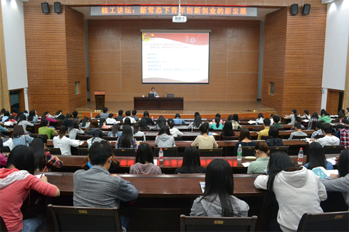 4月15日晚,共青团广西区委副书记刘玄启应邀做客桂工讲坛,在屏风校区图书馆报告厅作了题为“新常态下青年创新创业的新发展”的专题报告。管理学院200余名师生参加了报告会,报告会由学校团委书记周国桥主持。 刘玄启副书记分别从青年创新创业的重要意义,经济发展新常态的阶段性特征,青年创新创业面临的机遇与挑战、路径选择,共青团广西区委推进青年创新创业的举措以及青年创新创业需要注意的事项等方面向师生们介绍了新常态下青年创新创业的相关知识,同时鼓励同学们积极参加“挑战杯”等科技创新竞赛,在竞赛中提高自己的专业素质,培养发现问题解决问题的能力。刘玄启副书记的报告内容丰富翔实,主题鲜明,针对性强,对广大同学的创新创业起到了很好的指导作用。 据悉,学校高度重视大学生创新创业,已建成3000平方米的大学生创新创业基地,为学生的创新创业创造便利条件,同学们对创新创业的热情也持续高涨。