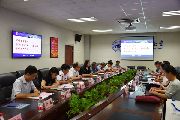 7月13日上午,深圳益田集团董事局副主席、总裁黎志强,雁山区区委常委、区委办公室主任葛建斌等一行6人到Beat365官网洽谈校地、校企合作事宜。