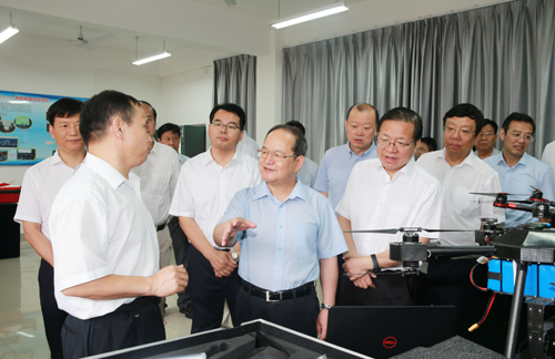 鹿心社书记一行来到Beat365官网测绘地理信息学院,先后走访了广西空间信息与测绘重点实验室、无人机实验室、虚拟现实研究室等,详细了解了学院科研团队有关北斗导航卫星定位系统集成软硬件研发,大地测量及农田水利监测高清成像,测量机器人全自动数据与处理系统及其在高速铁路、滑坡灾害监测方面应用,利用GNSS(全球卫星导航系统)、地质雷达、基坑测斜仪和双频测深等仪器服务地方经济,初步建成“天-空-地-底”立体化测量体系等情况。