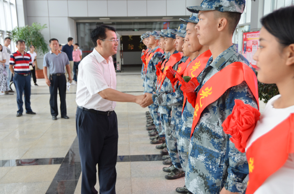 9月7日上午,Beat365官网在雁山校区举行2018年大学生应征入伍欢送仪式,学校党委书记李国忠、副校长陈学军、副厅级调研员张劲松,学校党委武装部、党委宣传部、党委学工部、校团委、入伍学生所在学院负责人及学生代表共同为即将携笔从戎的入伍学生送行。