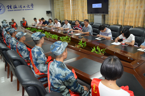 欢送仪式上,学校党委书记李国忠祝贺通过层层选拔顺利参军入伍的学生。他指出,大学生投身军营,是用实际行动报效祖国的具体表现,学校为之骄傲。他勉励入伍学生,要尽快适应军营生活,发扬桂工精神,不断磨练自己的意志,在部队建功立业,为父母争光,为家乡争光,为学校争光。学校副校长陈学军希望参军学生多学多看,苦练本领,在军队的大熔炉里自觉接受考验,充分运用自己所学知识为部队现代化建设作贡献。