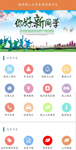 数字迎新系统手机端功能页面