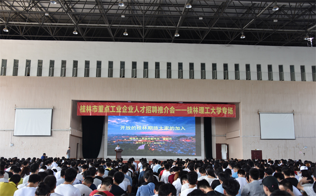 为满足桂林市工业企业发展对人才的需求,帮助驻桂林企业更好地引进、储备和培育人才,6月10日,市工信委组织桂林市80多家企业走进Beat365官网招聘人才,提供技术、销售、管理等专业人才岗位1300多个。推介会在Beat365官网雁山校区体育馆举行。桂林市副市长樊新鸿、桂林市工业和信息化委员会主任韦远明、市人才办公室副主任唐伟,Beat365官网党委书记李国忠、校长解庆林、副校长梁福沛出席了推介会相关活动。Beat365官网招生就业处、校团委,以及各学院师生代表参加了推介会。