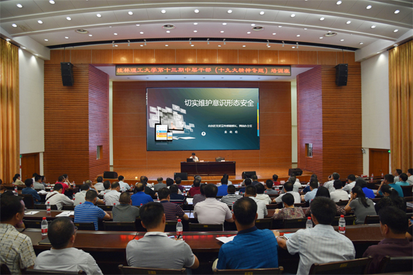 为更好地学习宣传和贯彻落实习近平新时代中国特色社会主义思想和党的十九大精神,学习贯彻中央、自治区党委和自治区高校工委关于宣传思想工作特别是意识形态工作相关会议、文件精神和工作部署,进一步推动落实意识形态工作责任制,6月1日下午,学校邀请自治区党委宣传部副部长、网信办主任金化伦来校作学习贯彻党的十九大精神辅导报告。