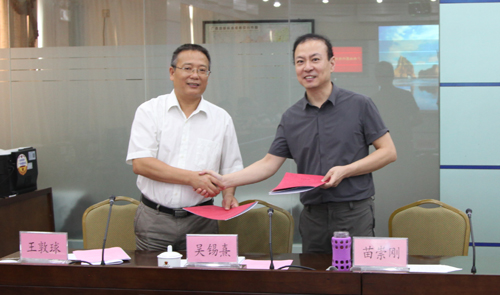 王敦球副校长(左)、苗崇刚局长(右)代表双方签署战略合作协议