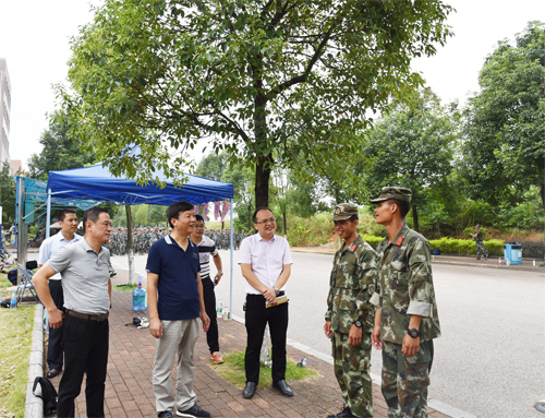 学校校长解庆林、副厅级调研员张劲松等到实地慰问教官,看望新同学。解校长对承训教官的辛勤付出表示感谢,并勉励参训同学要珍惜军训过程,强健自身体魄,磨练坚强毅力,养成良好作风,掌握军事本领,激发爱国热情,增强国防观念。