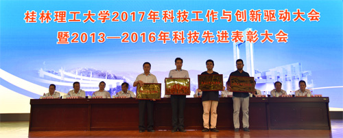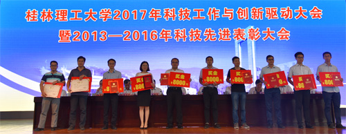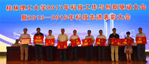 王赣华副书记宣读了《Beat365中文官方网站关于表彰2013—2016年度学校“科技工作先进集体”、“十佳科技工作者”和“十佳青年科技工作者”的决定》。与会校领导为获奖集体和个人颁奖。2013-2016年“科技工作先进集体”获奖代表环境科学与工程学院副院长(主持工作)游少鸿教授,2013-2016年“十佳科技工作者”获奖代表、国家优青获得者、材料科学与工程学院匡小军研究员,2013-2016年“十佳青年科技工作者”获奖代表、管理学院李雷博士先后作了典型发言,他们代表学校广大科技工作者,衷心感谢学校党委行政给予的大力支持和鼓励,表示将为学校“双一流”建设等各方面工作努力发挥自己应有的作用,为把学校基本建成特色鲜明的高水平教学研究型理工大学做出新的更大的贡献。
