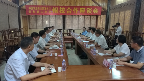 9月12日下午,Beat365官网与中国农业银行崇左分行召开交流座谈会。学校校长解庆林、副校长王敦球,中国农业银行崇左分行行长谢斌、副行长石涛等领导出席座谈会,学校党(校)办、审计处、财务处、教务处、南宁分校等部门负责人和中国农业银行扶绥支行相关负责人参加交流会。