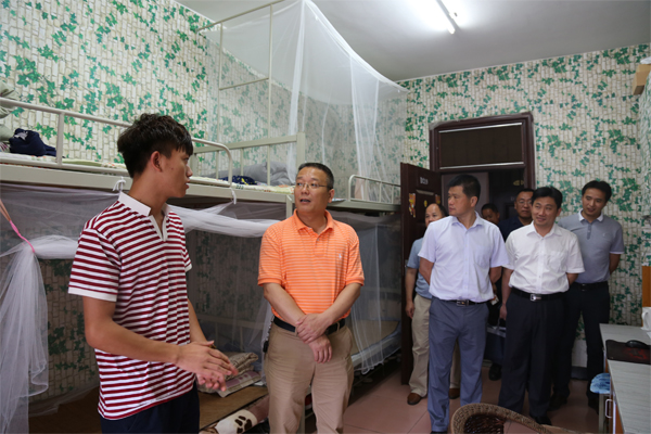 王敦球副校长(左二)率队对学生宿舍进行安排隐患排查