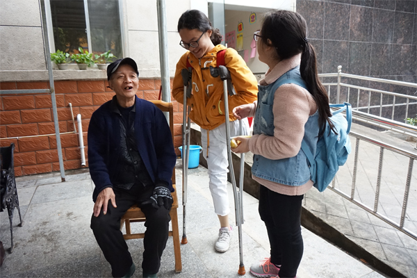 在养老院,志愿者陪老人们聊天,给予老人们最温暖的陪伴