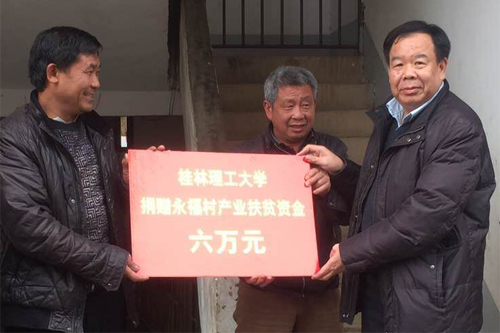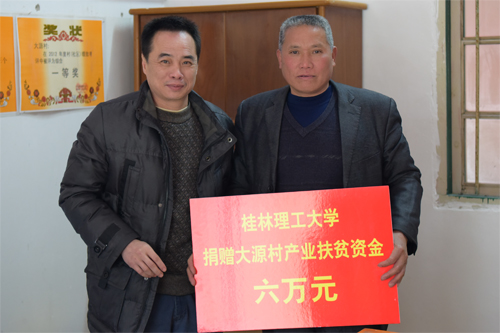 梁福沛副校长(右)代表学校向永富村捐赠六万元产业扶贫资金