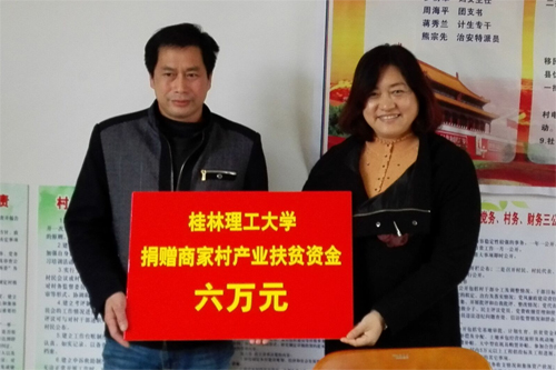 王玫副校长(右)代表学校向商家村捐赠六万元产业扶贫资金