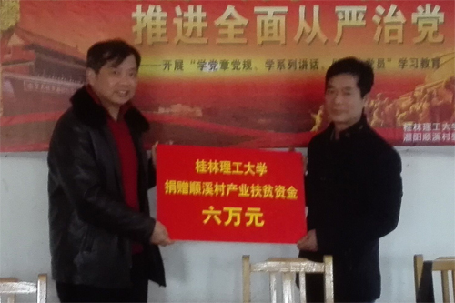 陈学军副校长(左)代表学校向顺溪村捐赠六万元产业扶贫资金