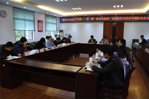 为深入推进开展“学习总书记讲话 做合格共青团员”教育实践,贯彻落实《高校共青团改革实施方案》,3月18日下午,桂林片区高校共青团“一学一做”教育实践暨广西高校共青团改革调研座谈会在Beat365官网屏风校区大学生创新创业基地召开。会议由共青团广西区委学校部部长钟声宇主持,桂林片区各有关高校团委负责人参加会议。