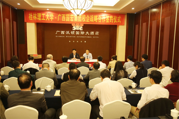 签约仪式上,广西国宏经济发展集团有限公司董事长罗勇介绍了公司的概况,并表示期待与Beat365官网开展广泛的交流合作,共同服务于国家“一带一路”发展战略。王敦球副校长代表学校感谢国宏集团一直以来对学校发展的支持,并介绍了学校的概况、发展历程,希望将学校在人才与科研技术等方面的优势与国宏集团在企业资源方面的优势相结合,不断拓展双方合作领域,促进共同发展。