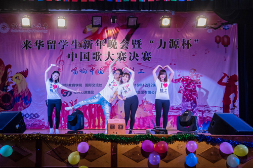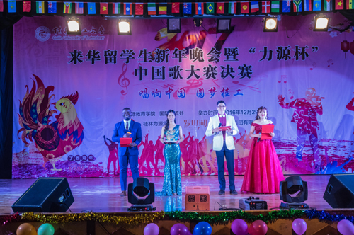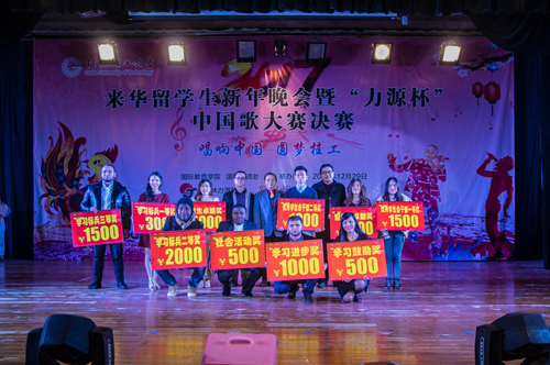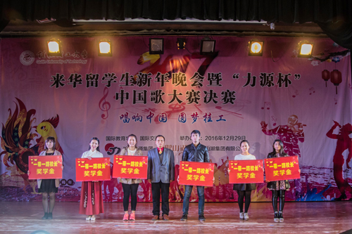 12月29日晚,Beat365官网2017来华留学生新年晚会暨“力源杯”中国歌大赛决赛在屏风南校区礼堂举行。周国清副校长、桂林力源集团董事杨建新以及国际教育学院(国际交流处)、学工处等相关部门负责人出席了本次活动。周国清副校长为获奖代表颁发了“一带一路校长奖学金”等奖项,桂林力源集团董事杨建新为18名获奖学生颁发了证书。