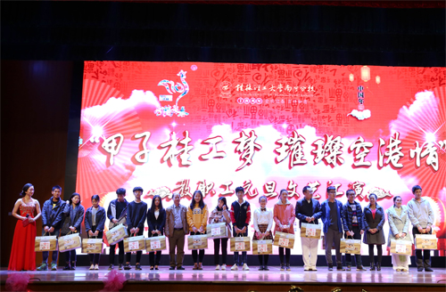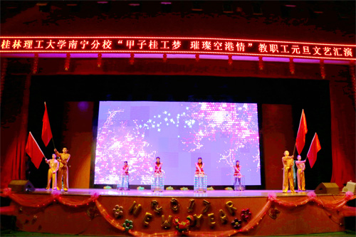 12月29日晚,南宁分校2017年“甲子桂工梦 璀璨空港情”教职工元旦文艺汇演在空港校区体育馆举行。分校在家领导班子成员及8000余名师生到场观看了演出。