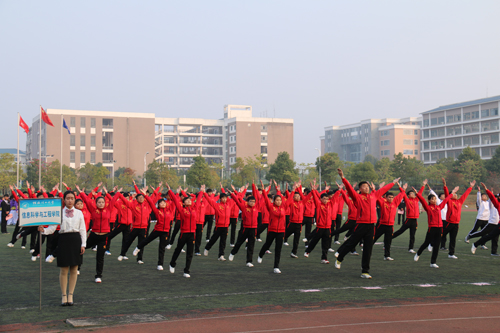 赛场上,各参赛队伍团结一心,热情参与,积极投入。同学们迈着稳健的步伐,穿着统一的服装,伸臂、扩胸、转体、踢腿、弯腰动作整齐划一,在冬日的阳光里舒展身姿,感受运动的活力,体会运动的快乐,充分展现了青年大学生奋发向上、朝气蓬勃的精神风貌,获得现场师生的阵阵掌声和欢呼。经过激烈角逐,艺术学院获得一等奖,理学院、管理学院、环境学院等3个学院获得二等奖,化生学院、人文学院、土建学院、旅游学院、测绘学院等5个学院获得三等奖。
