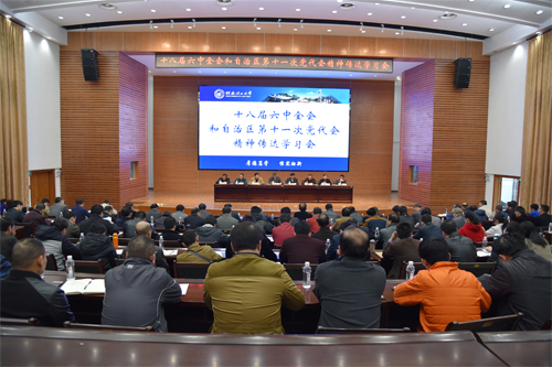 中共广西自治区第十一届委员会候补委员、学校党委书记张学洪传达自治区第十一次党代会精神