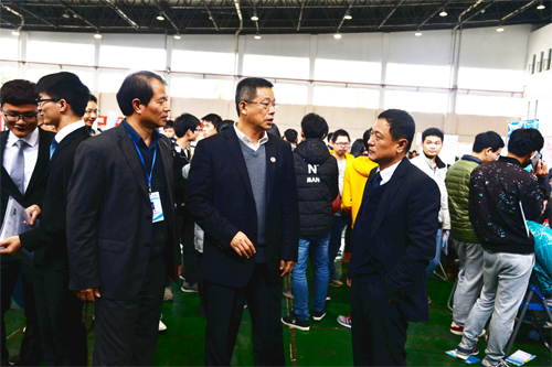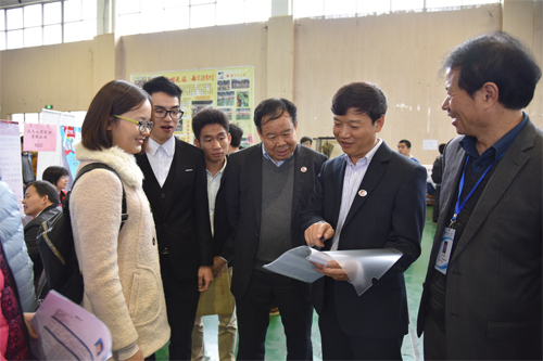 学校校长解庆林(右二)、副校长梁福沛(右三)等到双选会现场指导工作