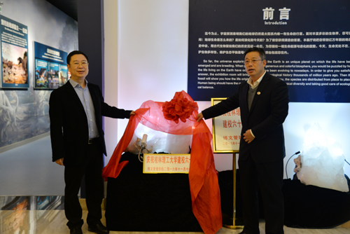 张学洪书记与李俊生董事长共同为捐赠标本揭牌