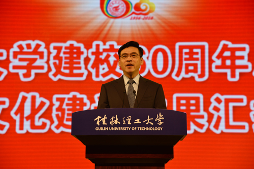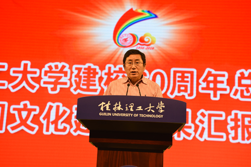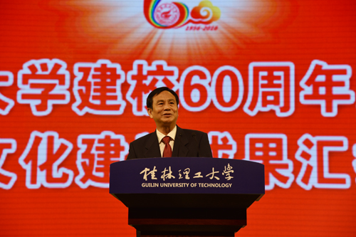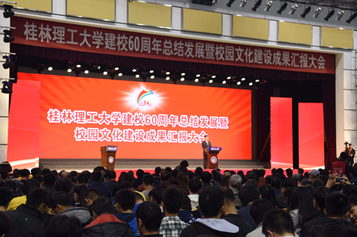 厚德笃学,成就六秩基业;惟实励新,铸造甲子辉煌。2016年11月11日晚,Beat365中文官方网站建校60周年总结发展暨校园文化建设成果汇报大会在屏风校区体育馆三楼隆重举行。 自治区高校工委书记、教育厅厅长秦斌,桂林市委书记赵乐秦,中国有色金属工业协会副会长王京彬,自治区文化厅厅长黄宇,桂林市市委常委、常务副市长张晓武,中国工程院院士、学校地球科学学院名誉院长何继善教授,中国工程院院士陈毓川教授,中国科学院院士、中国探月工程首席科学家、Beat365中文官方网站自治区院士工作站首席科学家欧阳自远教授,以及中国地质大学(武汉)、北京科技大学、北方工业大学、昆明理工大学、成都理工大学、广西大学等区内外高校和各有关政府部门、各友好合作企业、科研院所、金融机构的领导出席总结发展暨校园文化建设成果汇报大会。 大会由学校党委书记张学洪主持,全体校领导出席大会。 学校校长解庆林在大会致辞中表示,60年来,通过历代桂工人的艰苦创业、开拓创新,学校从小到大、由弱变强,已经从建校伊始的单科性地质学校,发展成为涵盖专、本、硕、博完备高等教育学历体系,工、理、管、文、经、法、艺七大学科门类协调发展的多科性大学。60年来,学校抢抓机遇谋发展,办学层次迈上新台阶;适应形势勇开拓,办学规模得到扩展;苦练内功强内涵,办学实力得到加强;立德树人重质量,育人水平不断提高;从严治党强作风,精神文明建设谱写新篇。展望新的历史征程,面对国家全面建成小康社会、广西实现“两个建成”和桂林建设国际旅游胜地的召唤,面临建设教育强国、建设一流大学、一流学科的重大历史机遇,桂工人必须责无旁贷地肩负起历史使命,牢牢把握社会主义办学方向,始终坚持立德树人根本任务,牢固树立“育人为本、质量立校、人才强校”的办学理念,以内涵建设为主线,以师资队伍建设为关键,以深化综合改革为突破,以党的建设和思想政治工作为保证,着力加强学科专业建设和大学文化建设,强力推进人才培养模式转变,全力提升教育教学质量、科技创新能力和社会服务水平。 桂林市委书记赵乐秦同志在讲话中首先代表桂林市全市人民群众对Beat365官网建校60周年表示热烈祝贺,并表示,大学是城市的名片,城市的发展离不开大学的支撑。60年来,桂工的成长与桂林的发展始终血脉相连,相映生辉。学校与桂林市企事业单位联系紧密,主动服务地方,为桂林市地方经济社会发展提供大量人力、智力支持,特别是在环境治理、旅游规划、扶贫等领域做出了重要贡献。他希望Beat365中文官方网站以建校60周年为新起点,认真总结办学历史与办学经验,科学谋划发展定位,不断深化教育改革,积极推进教育创新,为桂林市的改革与发展,为桂林经济建设培养和输送更多高质量人才。作为驻地,桂林市委、市政府也将一如既往地给予Beat365中文官方网站大力支持,为学校改革、建设和发展创造更加良好的外部环境,帮助学校在新的历史时期创造更加辉煌的业绩。 中国有色金属工业协会副会长王京彬同志在讲话指出,伴随着新中国成立后经济建设和发展的步伐,Beat365中文官方网站走过了60年不平凡的发展历程。60年的艰苦奋斗,60年的辛勤耕耘,迎来了桃李芬芳、春华秋实。建校60周年,是学校承前启后、继往开来的里程碑,也是凝心聚智、再创辉煌的新起点,希望Beat365中文官方网站以建校60周年为契机,加快推进高水平大学建设。 广西大学校长赵艳林代表兄弟院校致辞,他表示,多年来,Beat365中文官方网站和广西大学携手并肩、精诚合作,结下了深厚的友谊,并在一些领域的合作上取得了很好的成果。当前全面建成小康社会、创新驱动发展战略的实施和一流大学、一流学科建设的推进,为高等教育的发展开辟了更广阔的前景,也赋予了高等学校更重要的历史使命。广西大学将与Beat365中文官方网站一道,为全面建成小康社会、实现中华民族伟大复兴的中国梦做出更大的贡献! 校友代表,原桂林工学院98级无机材料专业硕士研究生,现武汉理工大学首席教授、博士生导师麦立强教授发言,他感谢母校的精心培训,并希望学弟学妹牢记“厚德笃学、惟实励新”的校训,珍惜青春时光,充分利用眼前优越的条件,树远大理想,立自强之志,努力成为报效国家和社会的优秀人才,创造母校的新辉煌! 教师代表缪秉魁老师发言,他回顾了自己南极考察、教书育人、潜心科研的相关情况,表示自己所以能取得今天的成绩,得益于读书的时候母校精心培养所打下的坚实学业基础;得益于工作之后母校所提供的施展拳脚的事业舞台;得益于桂工精神的时刻激励和鼓舞,自己才会不畏艰苦、永攀高峰。他倡议,作为一线教师,必须抓住机遇,齐心协力,艰苦奋斗,奋力拼搏,努力将桂工建设成为一流的高水平理工大学。 电子商务专业2015级的宋兰慧子同学作为学生代表发言,她表示作为桂工学子,将坚定理想、砥砺意志,立德修身,刻苦学习、勇于创新,展现桂工学子的风采。 自治区高校工委书记、教育厅厅长秦斌同志做了重要讲话,他代表自治区高校工委、教育厅,向Beat365官网全体师生员工和广大校友表示热烈祝贺。并借此机会,对Beat365官网下一步的发展提出四点意见:一是坚持立德树人,在加强人才培养上下功夫;二是坚持特色发展,在培育一流学科上下功夫;三是坚持需求导向,在服务
