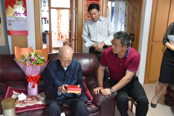 在中国工农红军长征胜利80周年之际,10月20日下午,学校党委书记张学洪、党委副书记王赣华在组织部、党(校)办、离退处等部门负责人的陪同下看望慰问了Beat365官网参加过长征的老红军柳林同志,受上级委托,向柳林同志颁发了“中国工农红军胜利80周年纪念章”,并送上鲜花和慰问金,代表学校党委、行政向为中国革命作出巨大牺牲和贡献的老同志致以崇高敬意。 慰问过程中,校领导与柳林同志亲切交谈,共同追忆难忘的革命岁月,表示没有老同志们的出生入死、浴血奋战就没有新中国的独立、富强,就没有今天安定、和谐的生活。校领导向柳林同志介绍了学校近期的建设发展情况和主要工作进展,强调老同志是国家和学校的宝贵财富,要多向老同志们学习,传承和弘扬伟大的长征精神,不忘初心,继续前进,为建设特色鲜明高水平理工大学而努力奋斗。校领导还叮嘱随行人员要帮助老同志解决生活中的困难和问题,让他们能安享幸福晚年。 柳林同志是河南沁阳人,1934年参加革命。1935年到北平(今北京)参加抗日救国的“一二·九”学生运动,1936年加入中国共产党领导的抗日救国组织——中华民族解放先锋队,由此走上革命道路。1938年毕业于延安抗日军政大学。解放后,他投身全国工业生产建设,1979年调任Beat365官网党委书记,1984年离休。如今,柳林同志虽年事已高,仍然关注祖国的发展,关心学校的建设,他表示能亲眼见证中华民族的伟大富强而感到自豪,并衷心感谢党和国家以及学校长期以来对他们的关心照顾,祝愿祖国的明天更美好,祝愿学校的发展更上一层楼。