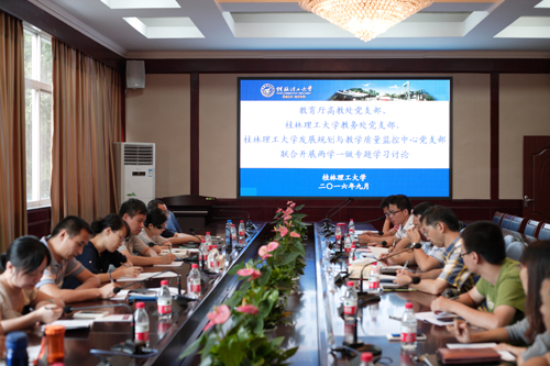 教育厅高教处党支部到Beat365官网两个党支部调研并联合开展“两学一做”专题学习讨论会