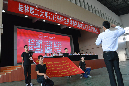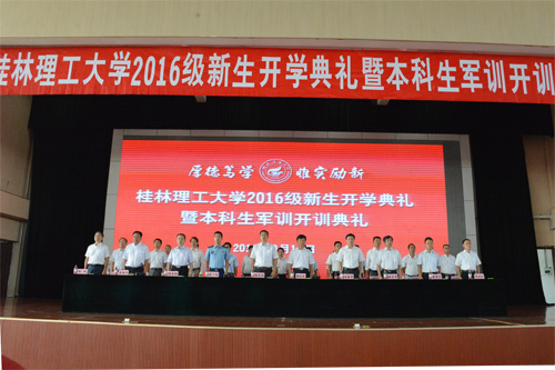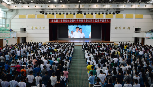 9月19日上午,Beat365官网在雁山校区体育馆隆重举行2016级新生开学典礼暨军训开训典礼。校领导张学洪、解庆林、王赣华、肖岳峰、陈学军、梁福沛、曾繁荣、张鹏、张劲松,本科生军训承训部队代表、中国人民解放军某部副参谋长朱一鸣少校,各职能部门、二级学院负责人,教师代表,在校生代表,2016级新生辅导员和班主任,2016级全体新生参加了典礼。梁福沛副校长主持典礼。 开学典礼在庄严的国歌声中拉开帷幕。 解庆林校长在典礼上致辞,代表全校师生员工对新同学的到来表示热烈欢迎,更以一个学兄和师长的身份与同学们坦诚交流:“同学们跨入大学之门,最重要的就是要学会自我修炼”,学会感恩,学会思辨,树立远大理想。他说,“古往今来,凡成就大事者,无不是树立远大理想、胸怀远大抱负的人。同学们是实现中国梦的主力军,更要树立高远志向。昨天是国耻日,每个中国人,特别是大学生,要不忘血泪,警钟长鸣,自强不息,为中华民族的复兴大业而努力!”解校长希望同学们在桂工学会自我管理、学会做人、学会做事。他希望桂工学子做一个阳光的人,多几分豁达开朗、宽容雅量,心中时时闪耀着太阳,言行上传播正能量;做一个文明的人,积极践行社会主义核心价值观,遵纪守法、恪守公德、诚信友善,爱国爱家爱校,成长为优秀的社会公民。解校长用郎平在中国女排里约奥运会夺冠后接受采访时说的“光靠精神不能赢球,还要技术过硬”勉励大家,既要有奋勇拼搏的精神境界,还要有过硬的“本事”,在大学里把专业知识学深、学透,刻苦钻研,培养实践能力和创新能力,勤于思考、勇于实践、敢于创新,以优良的综合素质赢得社会的肯定。解校长深情祝福每一位桂工学子:“立下报国宏愿,珍惜美妙青春,竭尽洪荒之力,努力前行,在Beat365中文官方网站谱写出最华美的人生乐章!”” 艺术学院教师徐云代表全体教师发言。就如何顺利度过四年大学生涯,徐老师给出了三条建议:树立目标、努力学习;积极上进、立志创新;加强修养,完善人格。她希望大家在桂工这个充满关怀、友爱和温馨的大家庭里,开启梦想,继承和发扬桂工精神,续写桂工更灿烂的篇章。 典礼上,校团委副书记、地球科学学院大四学生谭明灿代表学长学姐对新同学的到来表示热烈欢迎,并以“过来人”的角度向学弟学妹们建议:要把握珍贵的学习机会,在大学校园的青春舞台上绽放自己的才华理想,夯实专业知识,提高人文素养,积极参加各类社会实践,努力把自己塑造成既精通本专业,又具有崇高理想的高素质人才,为社会发展,为国家进步做出应有贡献。 人文社会科学学院2016级新生冯淼露、环境科学与工程专业博士蒋敏敏代表新生发言,表达了对新的学习生涯的憧憬,并表示“桂工是实现梦想的地方”,“人生最重要的不是你所处的位置,而是你所朝的方向,找准方向,专注多一点,努力多一点,离梦想就更近一点。”他们号召同学们:铭记“厚德笃学、惟实励新”校训,发扬桂工精神,以优秀为目标,以卓越为追求,在求知和发现自己的道路上不忘初心,勇往直前,朝着梦想的方向,扬帆起航。 随后,全体2016级新生进行了庄严的入学宣誓,从这一刻开始他们真正成为Beat365中文官方网站的一员,在桂工这片沃土上努力成就自己的梦想,立志做有益于国家、有益于社会、有益于人民的栋梁之才。 本科生军训承训部队代表、中国人民解放军某部副参谋长朱一鸣少校作了军训动员讲话,他希望广大新生在军训中不怕吃苦,不怕困难,听从命令,服从指挥,认真训练,挑战自我,养成良好的学习生活习惯,为顺利完成大学生活奠定坚实基础。 典礼在气势恢宏、令人振奋的校歌声中落下帷幕。今年的开学典礼以视频直播的方式,在雁山和屏风两校区同时举行,管理学院2016级新生及部分研究生在屏风校区体育馆三楼分会场同步收看了视频直播。