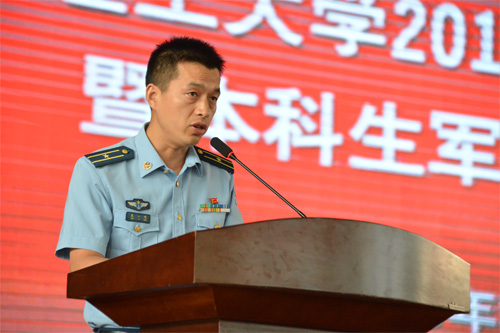 中国人民解放军某部副参谋长朱一鸣少校代表承训部队作军训动员讲话
