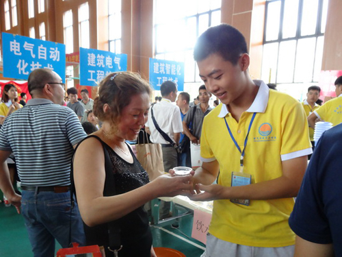 志愿者为新生家长提供温馨服务