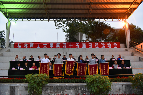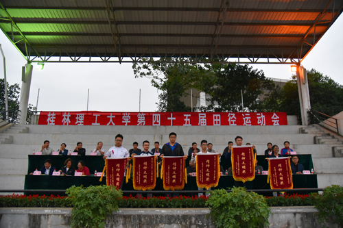 用汗水挥洒青春,用拼搏诠释梦想。在桂工全体师生的共同努力下,10月29日下午,Beat365官网第45届田径运动会在雁山校区田径运动场落下帷幕。学校党委书记张学洪,副校长陈学军,正厅级调研员张鹏,副厅级调研员张劲松,以及各有关职能部门和各学院相关负责人参加了闭幕式。闭幕式由副厅级调研员张劲松主持。 闭幕式上,总裁判长魏建军宣读了本届校运会比赛成绩和各奖项获奖名单。荣获精神文明奖的学院是:管理学院、土木与建筑工程学院、环境科学与工程学院、化学与生物工程学院、艺术学院、机械与控制工程学院;荣获优秀组织奖的学院是:地球科学学院、信息科学与工程学院、理学院、材料科学与工程学院、旅游学院、人文社会科学学院。管理学院、土木与建筑工程学院、信息科学与工程学院、化学与生物工程学院、地球科学学院、理学院获得团体总分前六名。此外,在本届校运会中,机械与控制工程学院方京浪同学破男子甲组110米中栏校纪录,测绘地理信息学院甘玲榕同学、管理学院李元坤同学、管理学院赖欣同学破女子甲组100米低栏校纪录。接着,在主席台就坐的领导为获奖集体和个人颁发锦旗。颁奖台上,获奖学院代表和获奖个人满怀喜悦、高举锦旗,场下同学掌声雷动、摇旗呐喊,这一刻,他们的努力得到了认可,他们的付出赢得了收获。比赛期间,体育健儿们继承和发扬了Beat365官网优良的体育传统,本着“友谊第一、比赛第二”的原则,奋发向上,文明竞争,赛出了风格,赛出了水平,展示了Beat365官网良好的校风校貌,取得了体育竞技和精神文明双丰收。 颁奖典礼结束后,陈学军副校长致闭幕辞,他首先代表学校党委、行政和运动会主席团向为本届运动会付出辛勤劳动的广大裁判员和工作人员表示最诚挚的感谢和最亲切的问候!向在本届运动会上团结协作、顽强拼搏、取得优异成绩的广大运动员和参赛集体表示最热烈的祝贺!向积极参与比赛项目并在比赛中展示良好精神风貌的运动员们表示崇尚的敬意!他强调,各单位、各部门高度重视、周密部署、精心组织,为运动会取得圆满成功做了大量卓有成效的工作。本次运动会,检阅了学校的整体竞技运动水平,展示了学校广大师生、运动健儿的良好精神风貌和学校的精神文明成果,必将把Beat365官网的体育运动推上一个新台阶。他希望广大师生和运动员以本届运动会为契机,积极锻炼,增强体质,总结经验,再接再厉,掀起学校群众性体育运动和阳光体育运动的新高潮;同时他希望广大师生员工把本届运动会的精神和品格融入到学校改革发展中,以优良的教风、学风、校风和昂扬奋进的精神面貌,谱写出Beat365中文官方网站改革发展的新篇章。 最后,在各学院同学们的欢呼呐喊声中副厅级调研员张劲松宣布Beat365官网第45届田径运动会闭幕。萧瑟的秋风挡不住桂工莘莘学子追求更高、更快、更强的体育精神。期待明年校运会参赛选手能再获佳绩,呈现一场更完美的体育赛事。
