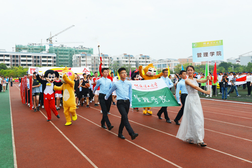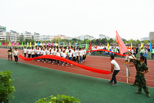 10月28日上午,Beat365官网第45届田径运动会在雁山校区隆重开幕。学校党委书记张学洪,党委副书记王赣华,党委副书记、纪委书记孙宁,总会计师曾繁荣,正厅级调研员张鹏,副厅级调研员张劲松,以及相关职能部门和各学院负责人参加了开幕式。开幕式由副厅级调研员张劲松主持。 整齐的装束,坚毅的脸庞,伴随着激昂的运动员进行曲,校国旗班迈着铿锵有力的步伐,庄严地护送五星红旗和校运会会旗进入会场。紧随其后的是鲜花队和彩旗队,同学们风华正茂,气宇轩昂,挥舞着鲜艳的彩旗和缤纷的花束,为运动健儿们加油助威。接下来是各个学院的方阵依次入场,场上鼓声雄壮,校歌嘹亮,同学们昂首挺胸,步履轻快,神采奕奕,脸上洋溢着自信而从容的笑容,他们展现的是当代大学生的精神风貌,是对桂工学子风采的最好诠释。 入场式结束后,张学洪书记致运动会开幕辞。他首先代表学校党委和行政,对本次运动会的顺利举行表示热烈祝贺,向为筹备本次运动会付出辛勤劳动的老师和同学们表示衷心感谢!他指出,经过45届的发展,田径运动会已经成为桂工校园生活的重要组成部分,成为Beat365官网全面贯彻党的教育方针、落实素质教育的重要体现。大学体育既是普及全民健身运动的有力措施,也是全面推进素质教育的重要内容,不仅促进师生强身健体,锻炼健康的体魄,而且能够培养师生团结合作的意识、勇敢坚强的品质、奋力拼搏的精神,这些对于加强校园文化建设,凝聚全体师生以良好的身体素质、饱满的精神面貌建设特色鲜明的高水平教学研究型理工大学具有重要意义。张书记强调,一年一度的校运会,既是对师生的体育运动水平和运动成绩的大检阅,也是全校师生道德品质、思想作风、精神面貌和校风校纪的大展示。他希望全体裁判员认真遵守裁判准则,秉公执法,公正公平,努力提高裁判水平,优化赛场秩序;希望全体运动员充分发扬“更高、更快、更强”的奥林匹克精神和“友谊第一、比赛第二”的良好体育道德风尚,以饱满的热情、昂扬的斗志投入比赛,顽强拼搏,奋力争先,赛出风格,赛出水平,力求竞技成绩和精神文明双丰收;希望全体观众尊重裁判员、尊重运动员,文明观赛事,理智待输赢,确保良好的赛风赛纪;希望各单位、各部门工作人员恪尽职守,热情服务,以一流的服务态度和良好的服务质量,认真做好后勤保障服务工作,确保运动会顺利运行。最后,张书记预祝学校第45届田径运动会取得圆满成功。 随后,悠扬的音乐声在田径运动场上响起,团体操方阵的同学们踏着歌声,斗志昂扬。他们的动作潇洒流畅,姿态优雅动人。他们在音乐声中奔跑,放飞梦想,燃烧青春之火,给现场观众带来了视觉的盛宴。武术协会的同学们带来了柔与美完美结合的太极表演,彰显着中华文化的源远流长与博大精深。紧接着,音乐停,鼓声起,活灵活现的舞龙舞狮表演将现场的气氛推向高潮,也深刻体现了桂工学子们对传统文化及精神的重视与传承。 开幕式上,李元坤同学和朱涌老师分别代表运动员和裁判员宣誓。 最后,张学洪书记宣布Beat365官网第45届田径运动会开幕。全场雷鸣般的掌声过后,运动员们随即投入到各项紧张激烈的比拼角逐中。