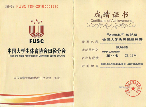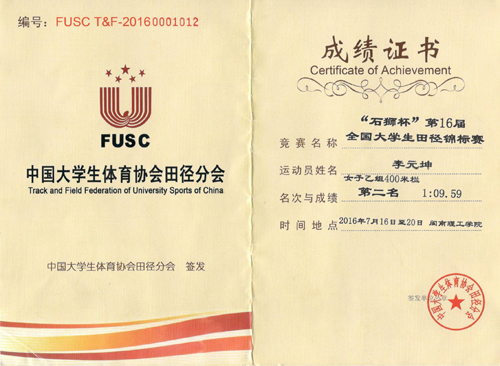 由中国大学生体育协会、中国田径协会主办的第十六届全国大学生田径锦标赛于暑期在福建石狮市落下帷幕,Beat365官网管理学院李元坤在女子400米栏比赛中以1:09.59的好成绩荣获第二名,同时打破学校最高记录;由甘玲榕、李元坤、王小方、李惠容组成的女子4×100米也打破学校记录;李燕妹荣获女子5000米第四名;段冰洁荣获女子铁饼第八名的好成绩。 据悉,本届全国大学生田径锦标赛由来自全国31个省(市、自治区、直辖市)和港、澳的190多所高校的近2800名运动员参赛,参赛高校数量及运动员人数均创历届新高。 为了在比赛中取得好成绩,Beat365官网运动员在教练员的悉心指导下,经过近一年的刻苦训练,克服了严寒酷暑、业余集训的困难,再一次用较高的体育竞技水平站在了全国的领奖台上。这一成绩的取得是Beat365官网长期以来重视学生身体素质锻炼的成果,必将更好地鼓励全校大学生积极参加体育锻炼,进一步提高自身综合体能,实现全面发展。