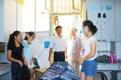 7月8日,材料科学与工程学院、土木与建筑工程学院和管理学院2015级的1374名本科学生从雁山校区顺利搬至屏风校区,开启了大学生活新篇章。搬迁过程中,学校党委书记张学洪、校长解庆林、副厅级调研员张劲松到现场指导搬迁工作,并走访了学生宿舍,了解学生思想动态。