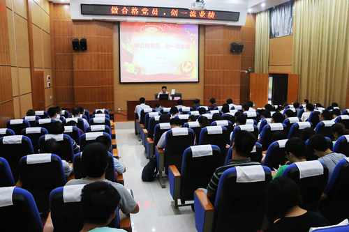 解校长为师生党员详细解读了《中国共产党章程》、《中国共产党廉洁自律准则》和《中国共产党纪律处分条例》的部分内容,并全面阐述了党章的重要性、严肃性、权威性,指出作为一名共产党员要学习好党章、遵守好党章、贯彻好党章、维护好党章,始终保持党的先进性,生命力和战斗力。他强调,要深刻认识“两学一做”学习教育的重大意义,以高度的政治自觉投身学习教育中,推动全面从严治党往深里走,往实里抓。解校长结合学校转型发展和办学实践,提出开展“两学一做”学习教育,必须要和学校的办学实际、人才培养的实际、教学科研和管理服务的实际相结合,努力推动学校和学院中心工作,用学校改革发展的新成绩来检验学习教育的实效。