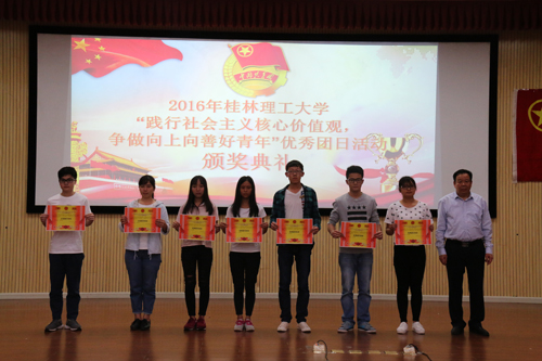 梁福沛副校长为2016年示范团日活动获奖团支部颁发奖状