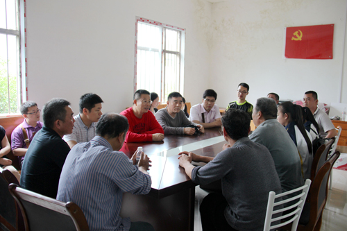 听取白面山村委负责人介绍学校援建的篮球场管理使用情况