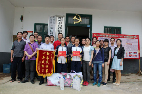 支部一行深入白面山村了解支部定向帮扶的特困户住房建设进度、学校援建的篮球场等情况,并与村委干部以及受资助的两名学生进行了座谈。在了解到支部两年前开始资助的两名贫困生学习成绩位居年级班级前列后,支部党员感到十分欣慰,张学洪书记还结合自身学习成长经历,语重心长地勉励两名学生刻苦学习,努力用知识来改变命运。会上,张书记一行还认真了解了白面山村存在的困难,就进一步做好精准帮扶、加快特困户住房建设、加强扶贫资金管理、完善文体设施器材等方面提出了建设性意见,并向两名贫困生赠送了慰问金和一批学习生活用品,对进一步做好帮扶工作做了后续安排。白面山村委对学校以及党办校办党支部一直以来的帮助和支援表示由衷感谢,并赠送了锦旗。