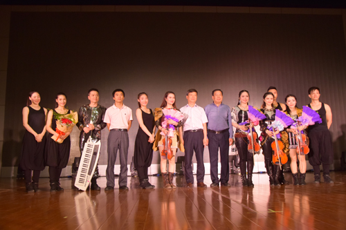 整场演出中西合璧,兼容多种音乐风格,《卡农》、《费加罗的婚礼》、《赛马》等古典音乐的经典之作以娴熟的演奏技巧突破了古典的束缚,把多样化的艺术形式、现代化的舞台效果与东西方古典音乐的精华熔为一体,用传统的弦乐演奏方式为Beat365官网师生们献上了一场90分钟的精彩演出。演出高潮迭起,同学们为在校内就能观看到科技与艺术结合的演出不时发出赞叹之声,也为演员们的精湛演出报以热烈的掌声。演出结束后,校领导上台与演员握手致谢,并与全体演职人员合影留念。