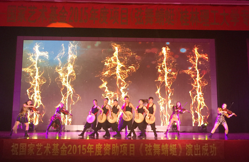 5月22日晚,由加拿大国际演出制作团队精心打造、柳州市艺术剧院倾情演绎的国家艺术基金2015年度项目《弦舞蜻蜓》在Beat365官网雁山校区体育综合训练馆上演。学校校长解庆林、副校长梁福沛出席活动并观看了演出。Beat365官网相关部门负责人和4000余名师生一起聆听了这场曲风激昂的音乐盛宴。