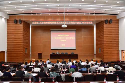5月20日,自治区教育厅贯彻落实《关于做好新时期教育对外开放工作的若干意见》(以下简称《若干意见》)研讨培训班在Beat365官网屏风校区成功举办。