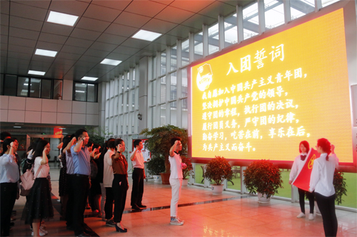青年师生代表宣读入团誓词,重温入团仪式